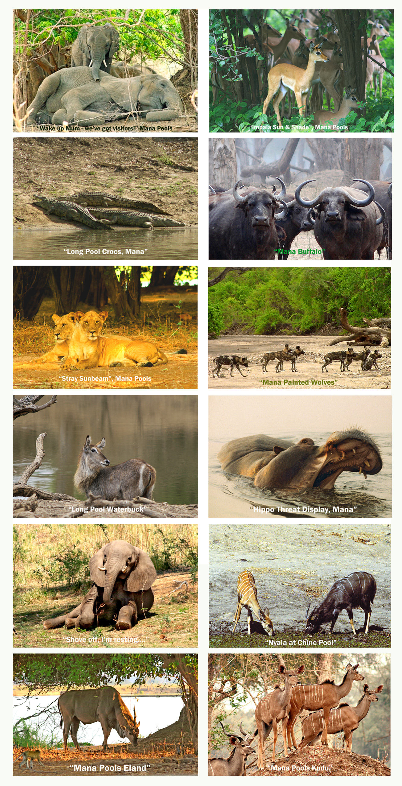 Some Mana Species… Will we ever see this again….? (All rhino photos are digitised transparencies) General Mana Scenes Old Mana hands will remember Vee, sometimes known as “Big Vic”… Next page: Matusadona Pages: 1 2 3 4 5 6