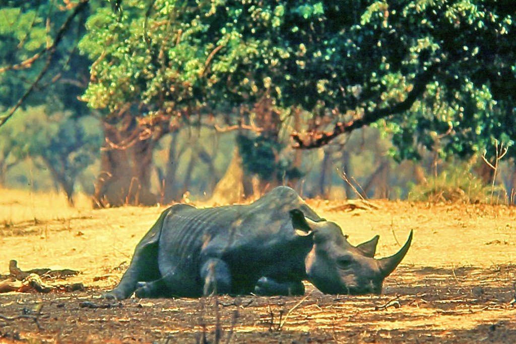 And, of course, we come back to the tragic story of the black rhinoceros, which was relatively common in both Matusadona and Mana Pools until the horn poaching – which had already annihilated populations further north – reached us. This guy’s territory was the Mcheni area of Mana, and I spent many fascinating days following him around on his meanderings. As I recall, he died in 1982 – but from anthrax, not at the hands of poachers: