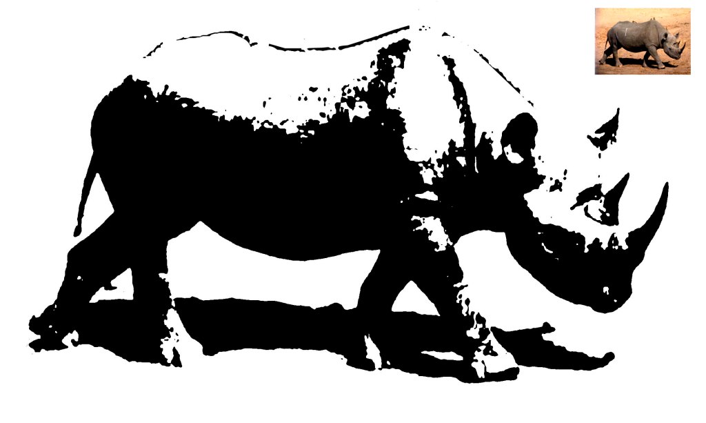 Another Mana rhino, photographed at Chine Pool, back in the day. Converted in Photoshop from slide to greyscale mode, background deleted, threshhold adjusted, and a great deal of tidying up. No pictorial context, I know, but it’s sat unused in my collection for years and this is a good excuse to use it: