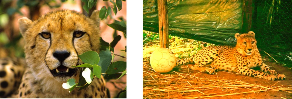 Finally: the experimental reintroduction of 18 cheetah to the Matusadona National Park in 1993, from other parts of Zimbabwe where they were being shot as cattle-raiders. (Photos: scanned transparencies of captive cheetah in the Fothergill boma prior to their release into the Park).