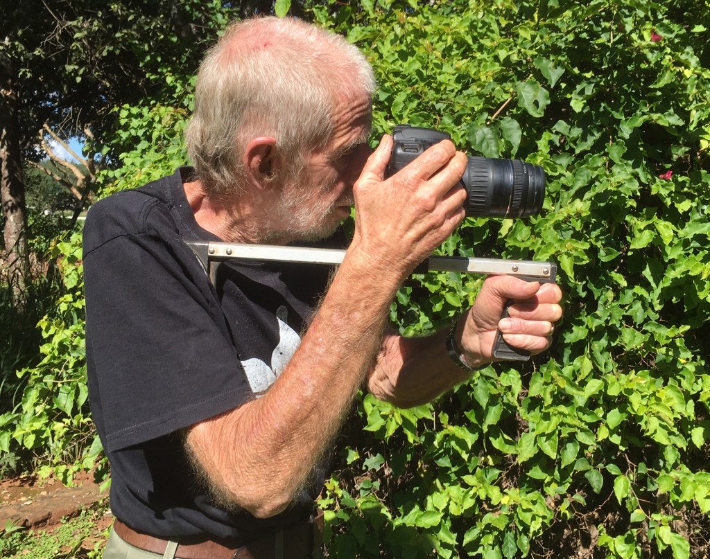 Most early photos were taken with a Canon FTb, a great camera in its day. Many of the colour transparencies were taken on Kodak Ektachrome 200, which was one of the very few films available here at the time, but – a great advantage – could also be processed here. The subsequent digital photos were taken with a Canon 30D, with 17-85 f/4 and 90-300mm f/5.6 lenses. Shoulderpod, as in the photograph above. A tripod that lives back in camp, most of the time. An Asus desktop computer with Digital Photo P:rofessional, Photoshop, and a large external backup drive. That’s it.