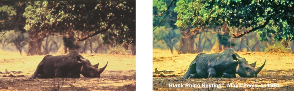 Actually getting the original is another story, of course, when something as grumpy and unpredictable as a wild black rhinoceros is involved. Luckily for me, rhinos sleep the sleep of the just, secure in their belief in their invincibility. Luckily for him, the tool of my trade is a camera, not a large-calibre hunting rifle.